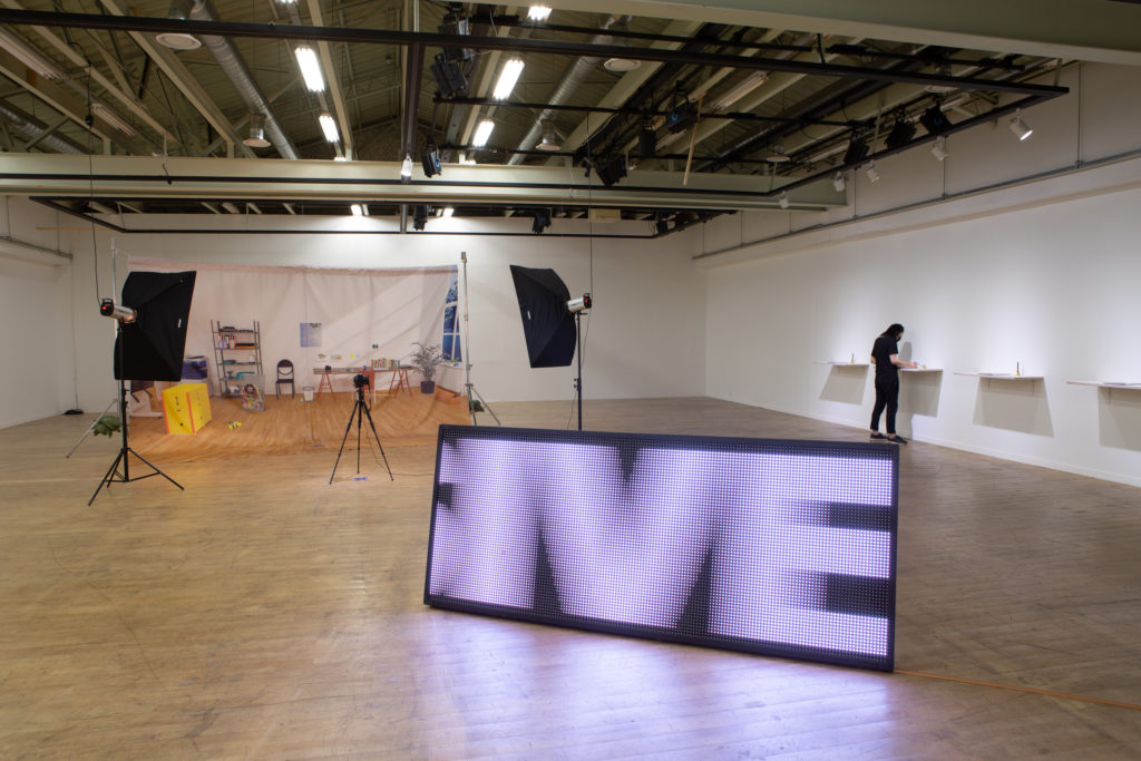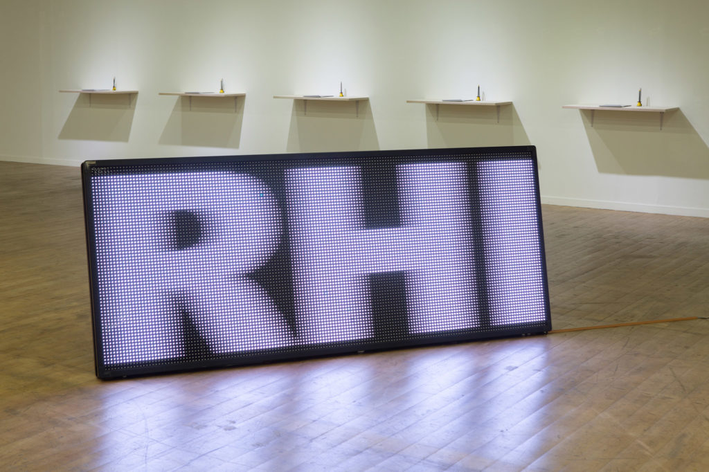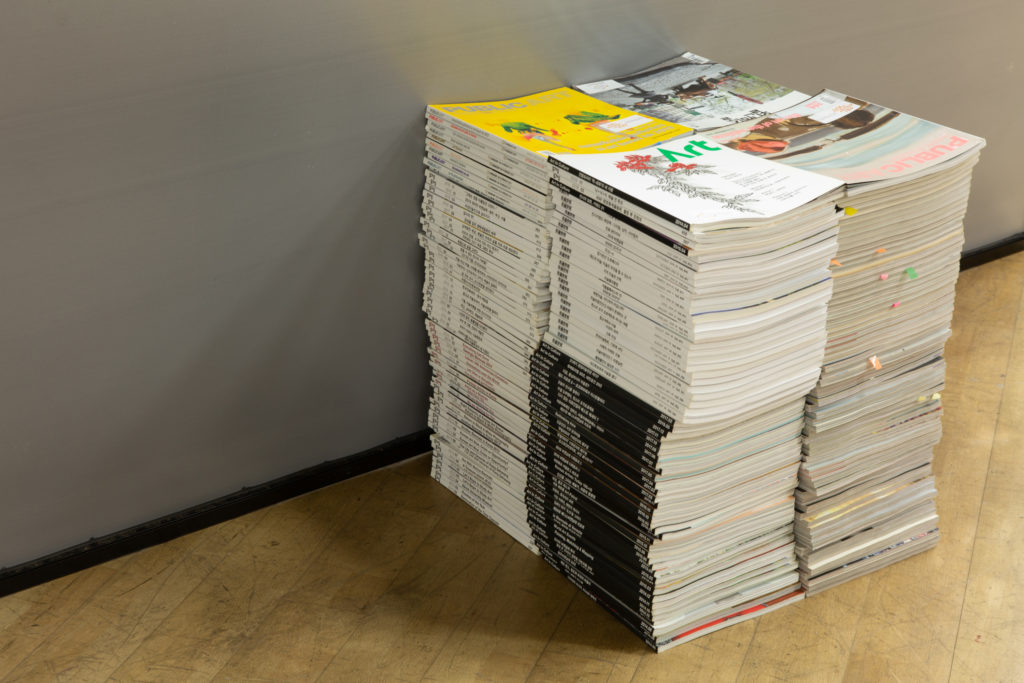 Artists, curators and critics used popular art jargons to decorate their writings and artworks. It might sound more professional, contextualized, more important than it is but difficult to be understood. These jargons pop up on the LED display like an attractive billboard. One keeps looking without reading a word from it. The LED panel is supported by piles of important art magazines borrowed from the archive of Seoul Art Space Geumcheon. Visitors could pick up the magazine but they would bear the risk to make the panel fall.