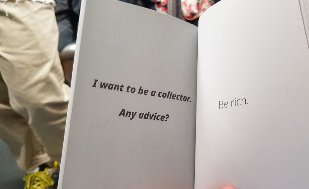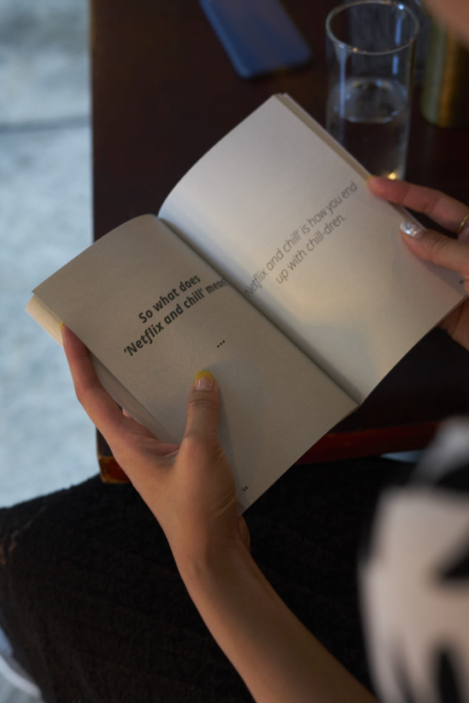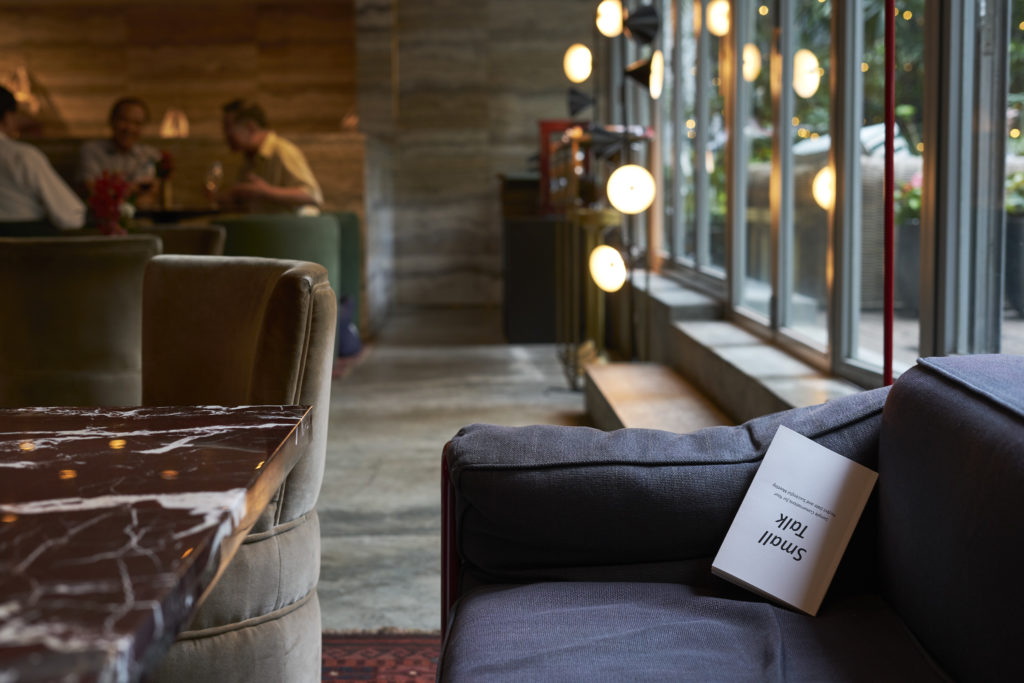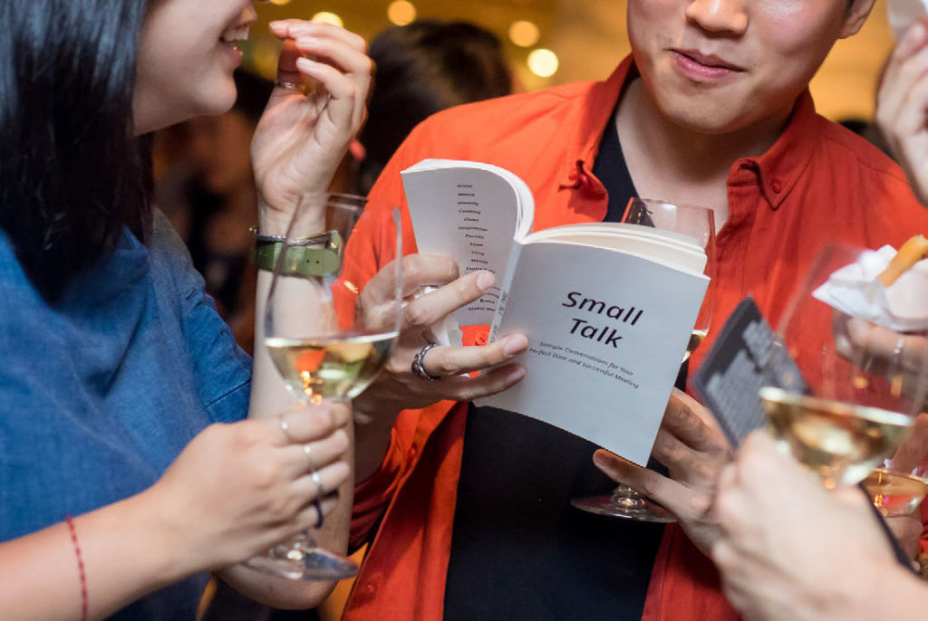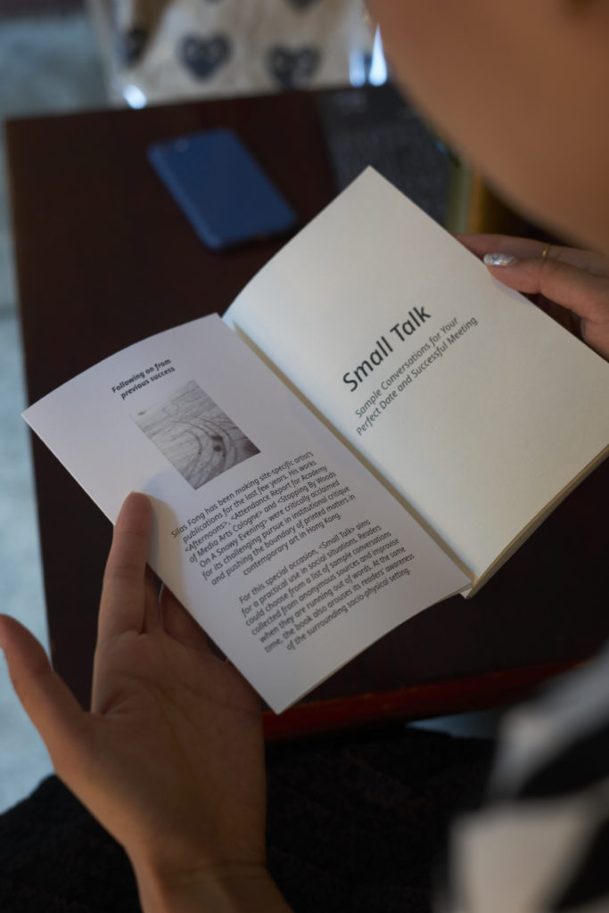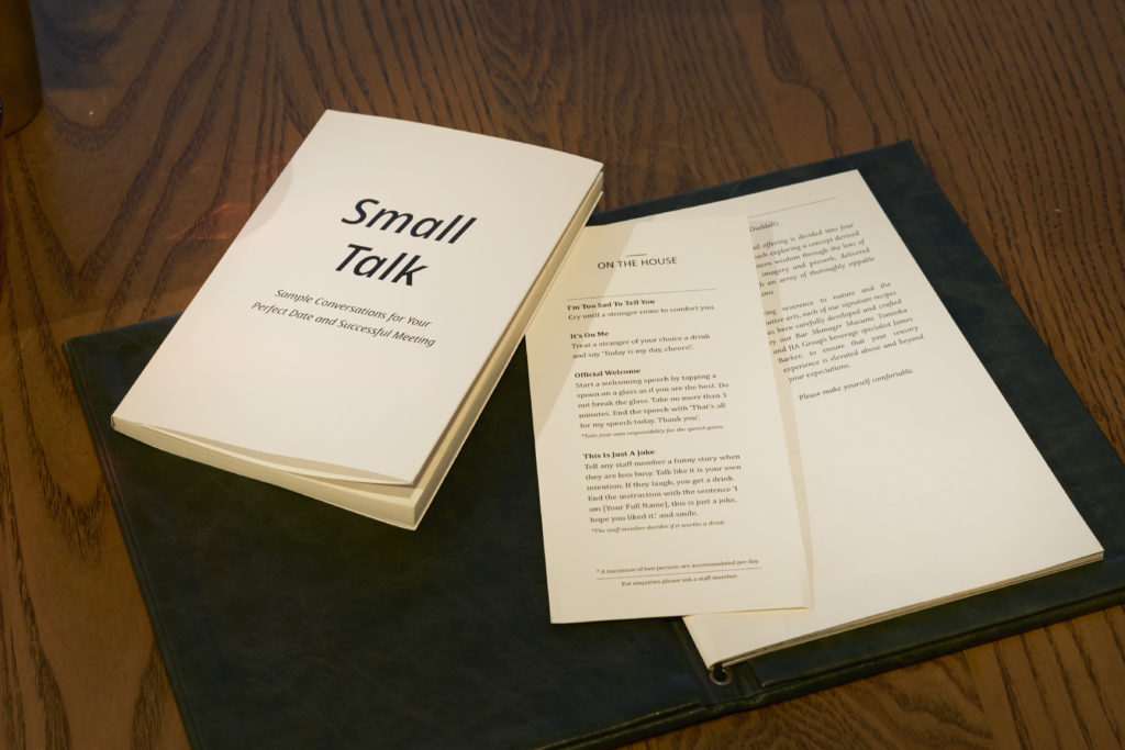 Small Talk is a small coffee-table book that visitors can flip through while having a drink and chatting with their peers. Instead of