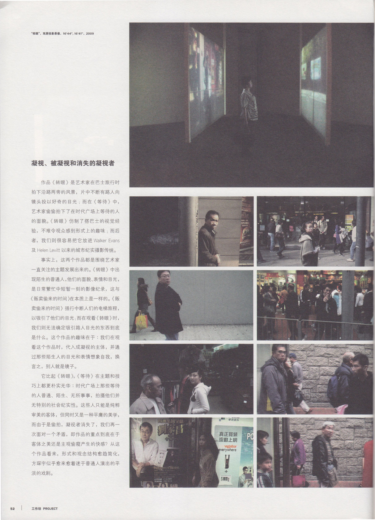 It was only natural that Silas Fong turned his eyes into the public bus system, having already explored the MTR as a ground for his work. Bus transportation invested him with a higher number of possibilities related, not only to the subjects of his videoperformances, but also to the surrounding urban landscape. His latest work, takes us into the realm of experience. The artist is not just preoccupied with the production of the images, but this time he applies the idea of circulation to his videoinstallation. Armed with a video camera inside a bus, he shot from the left side of the bus, thus filming a footage that shows us the life on the other side of the window. Passersby are invited to react to this filming as the artist reuses some of his tactics. The resulting video is exhibited in a real life size two channel projection; the visitor being sandwiched in between the two screens showing mirror like images. This idea of spatialization of video connects with the development of the genre of the installation. Sculptural qualities are linked to the moving images, enhancing the experience of the viewer, who at this stage is transformed into a visitor. Other issues, such as the representation of the real are also brought in through this strategy, adding complexity to what was originally a simple idea. Although the themes of Silas Fong’s work go back to the origins of video and its relation to experimental cinema, the way he resolves these dilemmas are only possible with the current technological and conceptual development. This is because of the way he uses space, but most importantly because of the use of a 16:9 panoramic ratio, which enhances the cinematic aspect of the work and points towards a departure from 70’s videoart.
