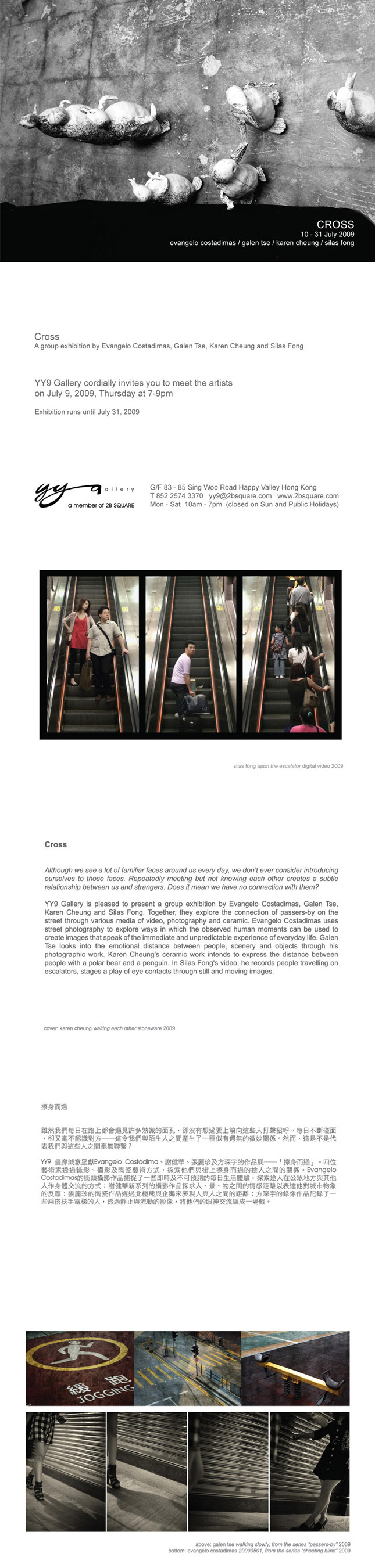 Young artist Silas Fong Sum-yu is making good use of being anonymous in his everyday life to investigate the relation between people, focus on the tension between public and private. Silas Fong silently captured the aesthetics features of uncertainty and randomness in tangible places and intangible spaces. Silas Fong shows his disillusions through investigation in the form of photograph, video, installation and performance.