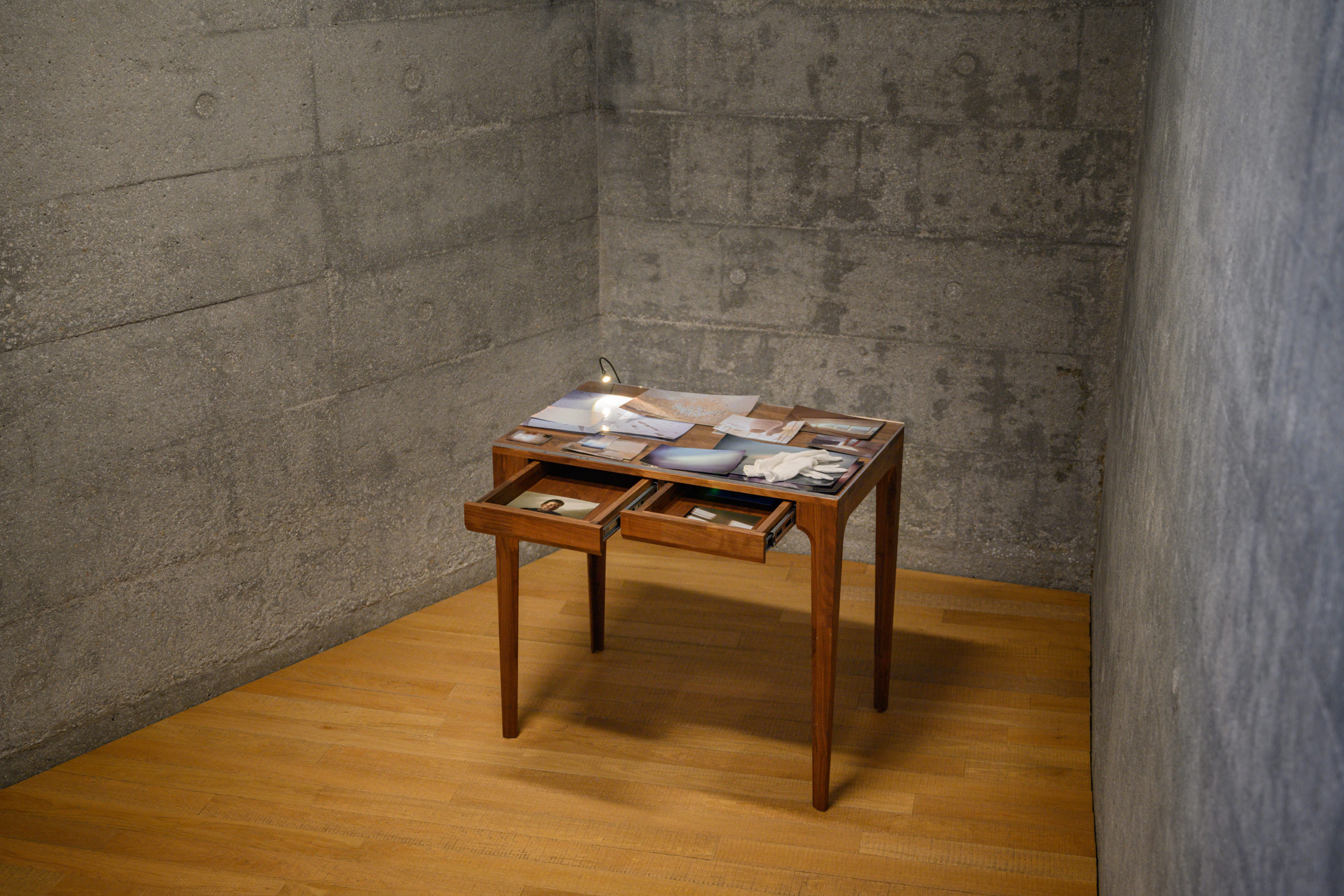電視、相片、檯、石頭 Television, Photographs, Table, Stone